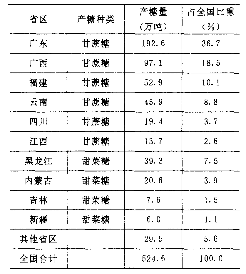 | 释义 | 中国的制糖工业zhongguo de zhitang gongye我国曾是世界最大产糖国之一。但现代制糖业发展缓慢,1936年 (历史最高) 产量仅41.4万吨,1949年下降到19.9万吨,当时仅有广东的东莞、顺德和黑龙江的阿城糖厂勉强维持生产。中华人民共和国成立后,食糖工业作为食品工业建设的重点,较快地获得了发展。1989年全国产糖496万吨,为1949年的25倍,产糖量居世界前列。但由于我国人口众多,人均消费水平仍大大低于世界平均水平。 全国主要产糖省、自治区糖产量(1986)