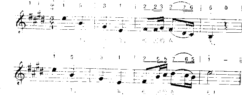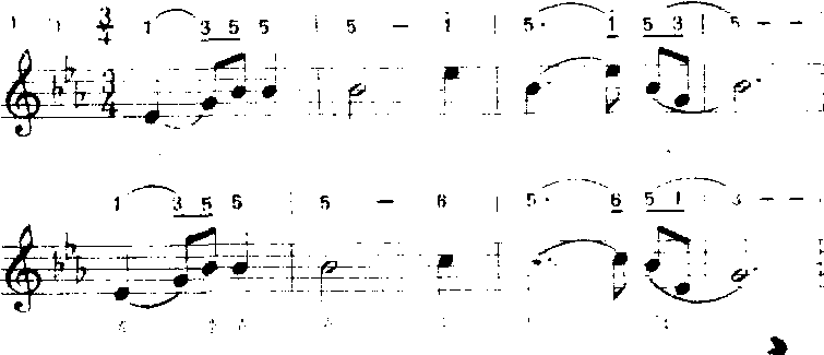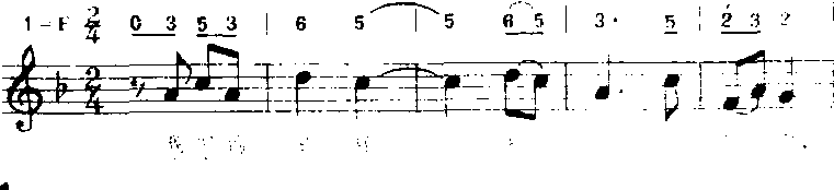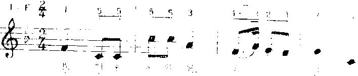 以上列举了用“我们”二字做为歌曲开头,而用不同的节奏处理,所表现的音乐形象和感情是各不相同的。可见节奏与语言的关系密不可分而处理方法又是丰富多采的。 |