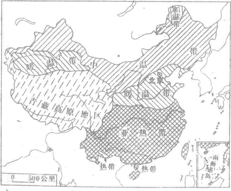 当日平均气温≥10℃时,大多数植物可以活跃生长,其持续时期称为活跃生长期。活跃生长期内,每天日平均气温的总和称为积温。积温的多少、活跃期的长短对于发展农业生产、决定耕作制度和农作物种类等都有着重要意义。根据≥10℃的积温和天数等指标(见表),中国的温度带划分为:寒温带、中温带、暖温带、亚热带、热带和青藏高原区。各温度带概况是:❶寒温带:限于黑龙江省北部和内蒙古东北部,面积只占全国总面积的1.2%。≥10℃的积温不足1600℃,活跃生长期不足100天,农业耕作制度只能一年一熟,勉强种植春小麦、马铃薯等早熟的喜凉作物。