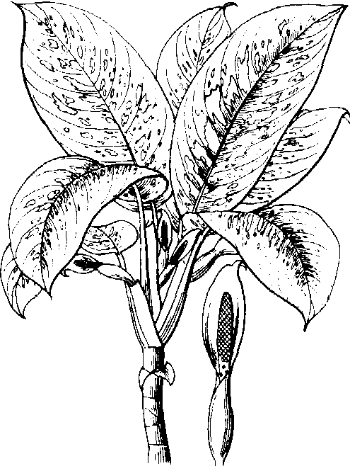 | 释义 | 花叶万年青variable tuftroot;spotted dieffenbachiaDieffenbachia picta,别名黛粉叶。天南星科花叶万年青属常绿亚灌木。染色体数2n=2x=16。有木质状的茎,高达1m以上。叶柄有鞘,具亮绿色斑纹;叶片宽椭圆形, 30~60cm长,基部心形,暗绿色,有光泽,具许多不规则的白色或黄色斑点和条纹。花轴短,佛焰苞卵圆形,长约8~10cm,绿色,肉穗花序色浅。变种有:狭叶黛粉叶(var.an-gustior),叶较狭窄,有白色斑纹。白柄黛粉叶(var.barraquiniana),叶柄与中脉白色,叶片有白斑。原产巴西。喜温暖、潮湿、半阴,疏松透水的肥沃土壤。生长适温18~25℃,越冬温度在15℃以上,如温度在10℃以下,则叶片发黄而凋落。用扦插繁殖,将茎于基部2~3节处剪断,留下的茎基仍可发芽,剪下的茎每2~3节为一插穗,插于蛭石或粗砂中,在25~30℃下,20~30天即可生根、发芽。带茎顶的一段泡在28~30℃水中,14天左右生根。花叶万年青是优良的室内观叶植物,适于盆栽作室内布置。其汁液有毒,栽植时慎防汁液接触人体粘膜部分。