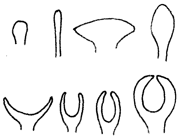 图9 花托的类型 花托见“花梗”。 花托receptacle花梗顶端着生花被、雄蕊群和雌蕊群的膨大部位。形状因植物种类不同而异。如木兰的呈圆柱状;草莓的肉质化膨大成圆锥状;蔷薇的呈壶状等。此外,有的植物其壶状花托与花萼、花冠、雄蕊群的基部愈合,并紧贴雌蕊子房,形成下位子房,如梨;有些植物的花托在花萼与花冠之间伸长,形成花冠柄.如剪秋萝;有的在花冠与雄蕊之间伸长,形成雌雄蕊柄,如西番莲;还有的在雄蕊群与雌蕊群之间延伸成雌蕊柄(子房柄),如花生。 |