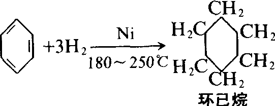 | 释义 | 芳烃的加成反应fangting de jiacheng fanying苯是一个电子密度完全均匀分布的闭合的共轭体系,环状的大π键比较稳定,与一般的不饱和烃相比,较难发生加成反应。但在特定的条件下 (如光照、高温、高压、催化剂等),苯环的大π键也可全部打开,6个碳原子同时发生加成反应,转变成环已烷或其衍生物。例如,在加热、加压和镍 (或铂) 催化下,苯可以催化氢化生成环已烷: