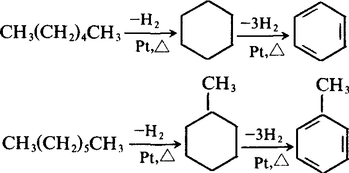 芳烃主要来源于石油和煤焦油。某些地区的石油中芳烃的含量较高,煤焦油中芳烃的含量约占25%,其中包括许多稠环芳烃。目前工业上生产芳烃的主要方法是在催化剂存在下,由石油馏分中的烷烃环化脱氢或由其中环烷烃异构化脱氢等形成芳烃。如:烷烃环化脱氢
