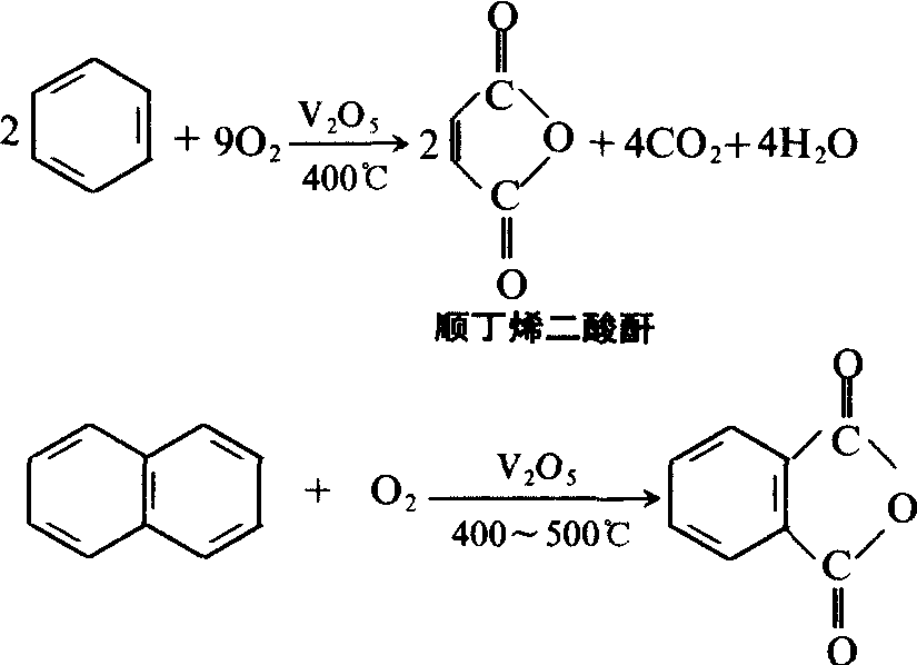 芳烃在高温和五氧化二钒催化剂作用下,可被空气氧化开环,如: