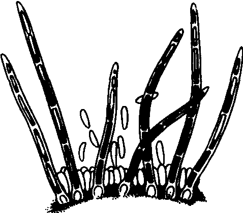 苎麻炭疽病菌分生孢子盘 侵染过程和病害循环 病菌以菌丝体在病组织内或病残中越冬,成为翌年初侵染源。种子带菌是该病菌远距离传播的媒介,并作为种子繁殖的新麻区的初侵染源。苎麻生长期间,病部产生的分生孢子籍风雨及昆虫传播,进行重复侵染。病菌孢子在有水滴条件下萌发直接侵入寄主组织。25~30℃时潜伏期5天左右。 病害控制 种植抗病品种是防治该病的有效措施,广西黑皮蔸、印度苎麻、安仁蔸麻等品种抗性较强,前者高产优质,发病重的年份能保产。选择排水良好的地块种麻,开好排水沟,及时中耕除草,清除田间病残等可减轻发病。发病初期用50%克菌丹可湿性粉剂或50%代森锌可湿性粉剂、50%退菌特可湿性粉剂或80%炭疽福美可湿性粉剂500~800倍液喷药保护,效果较好。麻地亩施50千克石灰,亦有良好的防病增产作用。 |