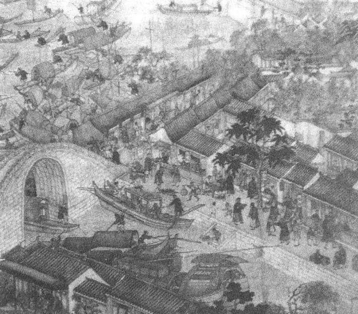 《盛世滋生图》 (局部) 苏州Suzhou江苏省省辖市,我国著名的历史文化古城、旅游胜地及轻纺工业基地。在江苏省南部,太湖东北,沪宁铁路和高速公路经此。全市辖平江、沧浪、金阊、郊区4个区及昆山、太仓、吴县、吴江4个县,代管常熟、张家港2个县级市。总面积8 488平方公里,其中市区面积119平方公里。1988年市区人口74.86万。苏州建城历史悠久,从春秋吴王阖闾建都至今已有2500余年。秦时置吴县,唐为苏州治。明、清为苏州府治。1949年设苏州市。苏州在历史上就是我国著名的“鱼米之乡”、“丝绸之府”。中华人民共和国成立以来,苏州工业发展建设已有相当规模和较高水平。全市目前已形成丝绸、纺织、轻工机械、电子、化工、医药、建材、冶金、食品十大产业,拥有1.7万个大小企业,近万种工业产品。1988年全市工农业总产值达到426.74亿元。其中不少工业居全国、省内重要地位。轻纺工业是苏州主要工业支柱产业,比重约占全市2/3。其中传统的丝绸工业已形成缫丝、纺织、印染、印花以及丝织机械制造的完整体系,年产丝织品2.3亿米,产量居全国城市首位,素被誉为“中国三大绸市”之一。纺织工业实力雄厚,针织、毛纺织、化纤、苎麻等种类齐全,纺、织、染、整成龙配套,年产棉纱5.3万吨、棉布2.75亿米、呢绒1 700万米。苏州又是轻工业小商品的重要基地,生产7 000多个品种,产品以精、轻、巧、美见长,在国内外享有很高声誉。新兴的家用电器工业发展迅速,电扇、电冰箱、吸尘器、电视机等已形成名优特新产品系列。苏州有“园林之城”的美称。这里集中了江南古典园林的精华,宋代的沧浪亭、元代的狮子林、明代的拙政园、清代的留园,融建筑、绘画、雕刻艺术于一体,是中华民族文化艺术宝库的瑰宝。苏州园林现有70多处,以古、秀、精、雅、多而获“江南园林甲天下、苏州园林甲江南”之称誉。此外,苏州还有著名古迹虎丘云岩寺、玄妙观三清殿、太平天国忠王府、盘门水陆城门等。苏州还被称作“水乡之城”,“绿浪东西南北水,红栏三百九十桥”,河网纵横,拱桥座座,形成独特水乡风貌。苏州风物特产丰饶,苏绣、缂丝、檀香扇、玉雕木刻等手工艺品,在国内外享尽盛誉。洞庭红桔、碧螺春茶、阳澄湖蟹、太湖银鱼也遐迩驰名。 苏州辽代州名。辽兴宗(1031—1054)置,军号安复,治所在今辽宁金县,为东京道所属节度使州,兵事属南女直汤河司,下领来苏、怀化2县。金皇统三年(1143),降为化成县 (参见化成县条)。 苏州古称平江,别称姑苏。中国著名历史文化古城。位于江苏东南部太湖东北侧,长江三角洲的中部,京杭大运河穿境而过。有2500年建城历史。春秋时期吴国建都于此,秦置吴县,隋置苏州。1949年设苏州市。西汉时成为东南大都会,现为中国农村商品经济比较发达地区。工业以轻纺为主,以精巧见长。其中苏州丝绸久负盛名,被誉为 “东方的彩霞”。手工业历史悠久,以刺绣、缂丝、宋锦等著称。古城至今仍保持宋代 “水陆并行,河街相邻” 的格局和 “小桥、流水、人家”的水乡风貌。以园林景致、湖光山色著称于世。著名的有北宋的沧浪亭、元代的狮子林、明代的拙政园与留园、清代的网师园、怡园、藕园等。市郊还有虎丘山、灵岩山、寒山寺、云岩寺塔和太湖等闻名中外的风景名胜。 苏州古称平江,别称姑苏。中国著名历史文化古城。位于江苏东南部太湖东北侧,长江三角洲的中部,京杭大运河穿境而过。有2500年建城历史。春秋时期吴国建都于此,秦置吴县,隋置苏州。1949年设苏州市。西汉时成为东南大都会,现为中国农村商品经济比较发达地区。工业以轻纺为主,以精巧见长。其中苏州丝绸久负盛名,被誉为 “东方的彩霞”。手工业历史悠久,以刺绣、缂丝,宋锦等著称。古城至今仍保持宋代 “水陆并行,河街相邻”的格局和 “小桥、流水、人家”的水乡风貌。以园林景致、湖光山色著称于世,著名的有北宋的沧浪亭、元代的狮子林、明代的拙政园与留园、清代的网师园、怡园、藕园等。市郊还有虎丘山、灵岩山、寒山寺、云岩寺塔和太湖等闻名中外的风景名胜。 |