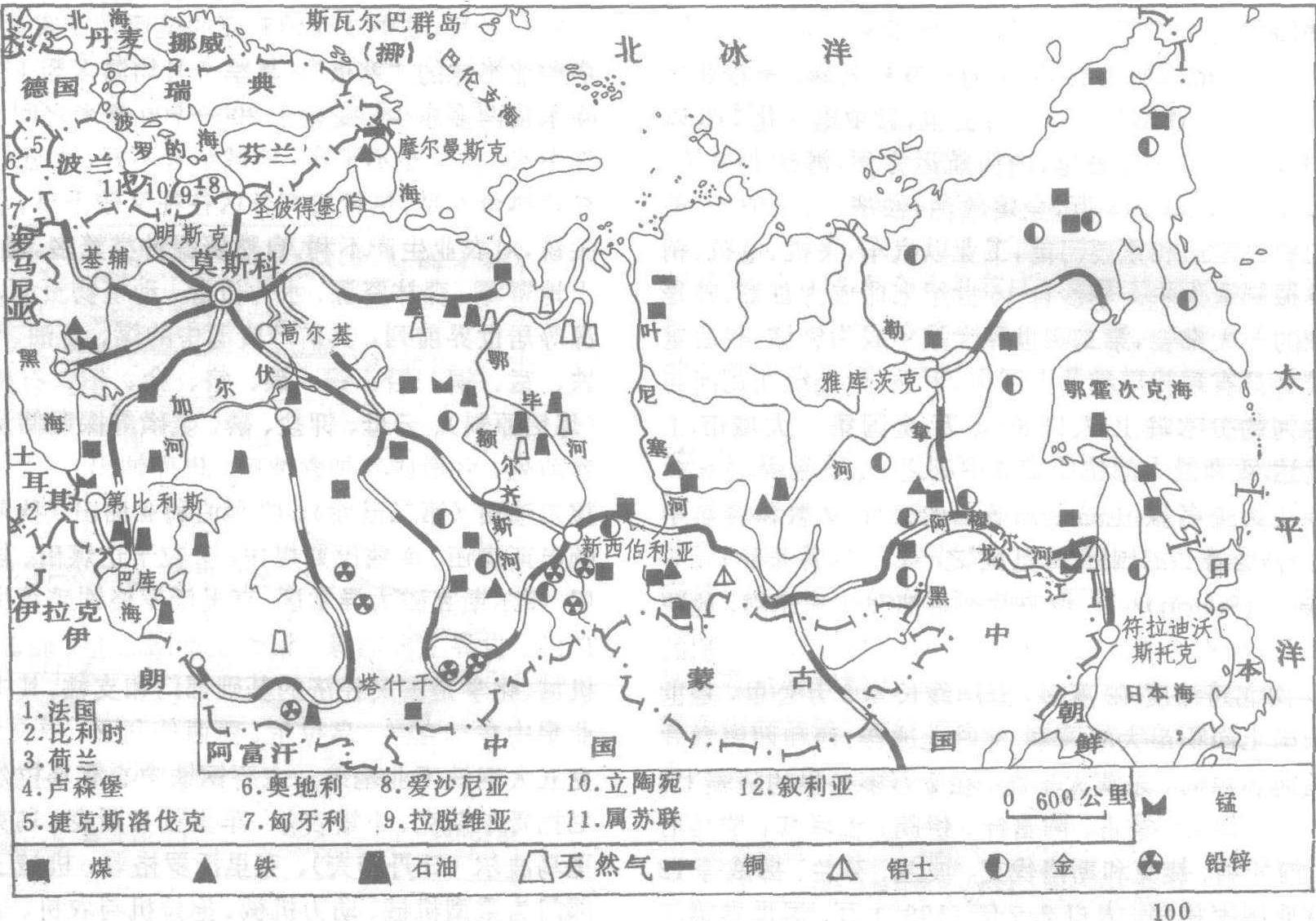 | 释义 | 苏联*Sulian位于欧洲东部和亚洲北部,地跨两大洲,面积2 240多万平方公里,占世界陆地面积的1/6,南北跨纬度42度多,海岸线长4.3万公里,是世界上国土面积最大的国家。北临北冰洋,西和西南濒波罗的海和黑海,东滨太平洋。在2万多公里的陆疆上,与中国、朝鲜、蒙古、阿富汗、伊朗、土耳其、罗马尼亚、匈牙利、捷克和斯洛伐克、波兰、芬兰、挪威等12个欧亚国家相邻。人口2.9亿(1990)万,居世界第三位,其中约3/4的人口集中在欧洲部分,2/3的人口为城市人口。共有130多个民族和部族,最大的民族为俄罗斯族,占全国人口一半以上,其它较大的民族为乌克兰族、乌兹别克族、白俄罗斯族、哈萨克族、鞑靼族、阿塞拜疆族、亚美尼亚族、格鲁吉亚族、摩尔达维亚族、塔吉克族、立陶宛族及土库曼族等。根据各民族居住特点和民族自决原则形成15个加盟共和国,按面积大小依次为俄罗斯联邦、哈萨克、乌克兰、土库曼、乌兹别克、白俄罗斯、吉尔吉斯、塔吉克、阿塞拜疆、格鲁吉亚、立陶宛、拉脱维亚、爱沙尼亚、摩尔达维亚、亚美尼亚。俄语为官方语言,居民多信东正教,次为伊斯兰教和天主教。苏联平原、山地、高原交错分布,平原占60%,山地和高原各占20%,地势西、北部低,东、南部高,大致形成三大地形区:叶尼塞河以西主要为3大平原(东欧平原、土兰低地、西西伯利亚平原)、叶尼塞河与勒拿河之间为中西伯利亚高原、东部和南部为山地带。主要山脉有乌拉尔山脉,为欧亚两洲自然地理分界线;高加索山脉,亦为欧亚两洲自然地理分界线。河流分属四大水系:北冰洋、太平洋、大西洋、里海—咸海等内流水系。主要河流有鄂毕河(上游为中国的额尔齐斯河)、叶尼塞河、勒拿河、伏尔加河、第聂伯河、顿河、乌拉尔河(欧亚分界线)、阿穆尔河(中国称黑龙江)等,河流总长度964.8万公里,多集中于东部。湖泊众多,其中有世界最大的咸水湖里海、世界淡水容量最大和最深的贝加尔湖,还有巴尔喀什湖、咸海等。基本上属温带和亚寒带大陆性气候,冬季漫长、严寒干燥,夏季短促、温暖,春秋季短,气温年较差大,冬季最冷月(1月)均温基本在0℃以下,多在—10——30℃之间,其中东西伯利亚的奥伊米亚康达—71℃,堪称北半球的“寒极”;夏季7月均温多为12—24℃。降水量西多东少,变化于200—700毫米之间。气候条件中水、热分布不平衡,地域结合不好,水分好的地区往往热量不足,热量较充分区往往又较干旱,水热矛盾尖锐,对农业生产不利。自然资源种类繁多,蕴藏量大,土地资源、森林资源、水力资源、动植物资源、矿产资源等居世界前列,其矿产资源中的煤、石油、天然气、铁、锰、铜、铅、锌、镍、铬、金、铂、石棉、霞石(炼铝原料)、云母、钾盐、磷、硫磺等探明储量均居世界前列,并形成高加索油田(巴库油田)、伏尔加—乌拉尔油田(第二巴库)、西西伯利亚油田(秋明油田)、顿巴斯煤田、库兹巴斯煤田、卡拉干达煤田、伯朝拉煤田、库尔斯克磁力异常区、克里沃罗格铁矿等世界知名矿区。世界主要能源、钢铁生产国之一,能源、冶金、机械、化学是国民经济的基础部门和支柱,其中钢铁工业集中在乌克兰、乌拉尔、西西伯利亚、中央区、哈萨克五大钢铁工业基地,主要钢铁中心有乌拉尔的马格尼托哥尔斯克、下塔吉尔、车里雅宾斯克、乌克兰的马里乌波尔(日丹诺夫)、克里沃罗格等;机械工业主要部门为重型机械、动力机械、拖拉机与农机、运输机械等;化学工业主要产化肥、硫酸、纯碱、合成橡胶及石油化工等;重工业发达,轻工和食品工业落后,轻工业以纺织业为主。农业相对薄弱,但农产量居世界前列,农业的物质技术装备水平较高,种植业与畜牧业为最主要的农业部门,主产小麦、大麦、棉花、甜菜、向日葵、亚麻等作物,畜养牛、猪、羊、家禽、马和驯鹿等。交通运输业因地域辽阔而更为重要,发展迅速,以铁路为主,包括河运、公路、管道、海运和航空等比较发达的交通运输网。铁路以莫斯科为中心,运营里程14万多公里,西部密度大,主要铁路干线有横贯西伯利亚和远东地区南部的西伯利亚大铁道及第二条西伯利亚铁路(贝—阿铁路)等。公路总长151.7万公里,主要分布在西部地区。通过运河沟通河、海航运,主要港口有敖德萨、圣彼得堡、符拉迪沃斯托克(海参崴)、摩尔曼斯克等。民航线总长102万公里,航空港有莫斯科、圣彼德堡、基辅、新西伯利亚、叶卡捷琳堡、塔什干及伊尔库茨克等。首都和第一大城市为莫斯科。第二大城市为圣彼得堡,曾名列宁格勒,人口490万,全苏第二大机械工业中心、最大海港和重要的水路交通枢纽及科学文化中心之一。第三大城市为乌克兰首都基辅,人口250多万,重要的铁路枢纽。其它主要城市还有俄罗斯的下诺夫哥多德(高尔基)、新西伯利亚、伏尔加格勒、叶卡捷琳堡(斯维尔德洛夫斯克)、车里雅宾斯克、乌克兰的哈尔科夫、敖德萨、白俄罗斯的明斯克等。