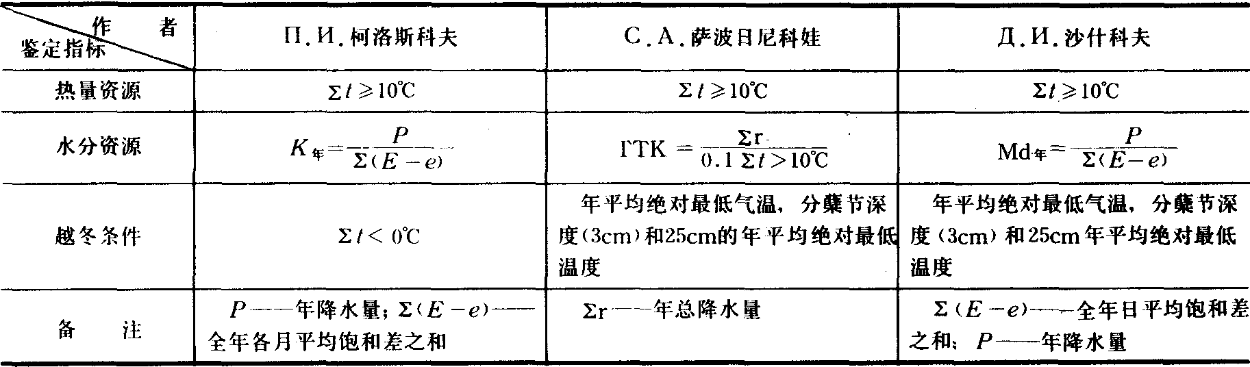 萨波日尼科娃等人的农业气候区划, 亦具有科学和实践价值。区划指标见表2。