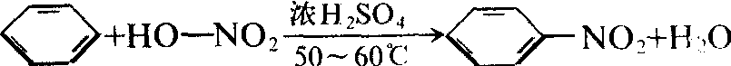 | 释义 | 苯的硝化反应实验ben de xiaohua fanying shiyan苯与浓硝酸在浓硫酸的催化作用下可发生取代反应,生成硝基苯,称为苯的硝化反应: