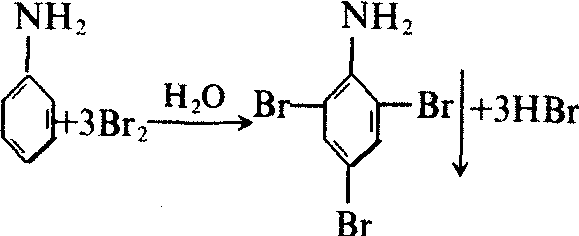 苯胺是弱碱,与稀盐酸反应生成盐。苯胺分子中的氯基为强的邻对位定位基,由于氨基的影响,使苯基上电子云密度增大,尤其邻对位电子密度较高,容易发生亲电取代反应。稀的苯胺水溶液与溴水立即反应,得到2,4,6-三溴苯胺白色沉淀。