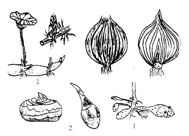 地下茎类型 1. 根状茎 2. 球茎 3. 鳞茎 4. 块茎 |