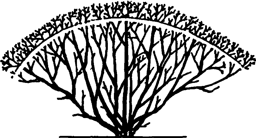 茶树深修剪 深修剪的树冠形状, 依原茶树形状进行。其工具可用重修剪剪刀和深修剪机。 将深修剪用于茶行的两侧, 而不用于树冠面的修剪称为边缘修剪。这种修剪是在成年高产茶园中应用的方法, 当行与行之间已全被树冠覆盖, 茶园中通风透光条件变差,而且采茶及其它农事操作难以进行时,可将茶行边侧各修去10厘米。使行与行之间有20厘米的间距, 切勿过重, 否则树道覆盖度降低过多, 导致减产。 茶树深修剪tea deep pruning又称回头剪。将茶树树冠面上10~15 cm的枝叶剪去的修剪方法。茶树经多年轻修剪、采摘后,树冠面部分枝条愈发愈密、愈细,并出现大量鸡爪枝,萌发的新芽梢瘦小,叶片薄,对夹叶多,茶叶产量和芽叶品质下降,这时必须将鸡爪枝剪去。其树冠形状可依原状进行。