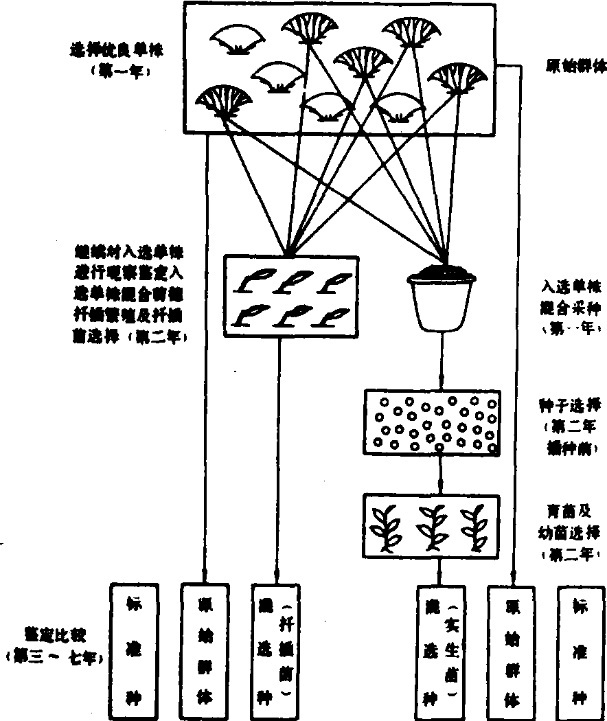 | 释义 | 茶树混合选择mixed selection of teaplant茶树选择育种法之一。是从混杂的茶树群体品种中, 按育种要求选出一群优良单株, 然后采集种子混合播种, 或进行无性繁殖, 再与同龄对照品种及原始群体进行比较。此法简便, 能较快地提高群体品种的纯度, 有时还可在短时间内从原有群体品种中分离出优良类型, 迅速满足生产上的需要。其主要缺点是: 因为选择是根据表现型来进行的, 当然, 在一定程度上表现型也是基因型的反映,但是有些性状,特别是一些数量性状,往往因环境影响而表现悬殊。有时可能将一些表现型良好, 而基因型并不理想的个体也选进来。这样就降低了选择的效果。中国茶区的主要栽培品种, 多为有性群体品种, 一般都较混杂, 如进行混合选择, 一定大有成效。