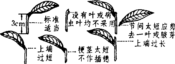 | 释义 | 茶树短穗扦插single node cutting of tea plant利用长3~5 cm短枝插穗进行扦插的茶树无性繁殖方法。扦插枝条要求长25 cm以上,茎粗3 mm以上。当大部分茎已木质化呈红棕色,上部黄绿色已硬化,腋芽米粒大,叶片已成熟时,从鱼叶上留1~2片真叶处剪下。从下端向上剪,一般一个节间上端带一腋芽,一叶可作一个插穗,如果节间短,可将两个节间作一个插穗,剪去下端叶片,插穗两端剪成斜面。在扦插前苗床须行洒水,使表土湿润,待稍干不黏手时,按叶片长度划行。扦插时用拇指和食指夹住插穗上端叶柄,垂直插入土2/3,芽和叶柄露出土面,并用另一手食指稍揿压,使切口和泥土紧贴。插后充分浇水,用薄膜在扦插畦上全面成弧形覆盖封闭,然后遮荫。约一个月左右即可发根。
