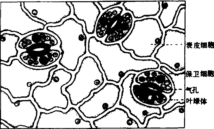 图1 茶树气孔构造 茶树蒸腾速率 茶树根系吸收的水分, 运到茎叶和其它器官中, 少部分用于代谢活动, 大部分通过蒸腾作用, 以水汽状态排出体外(图2)。茶树年龄、叶龄和形态构造不同, 蒸腾速率相差很大。茶树蒸腾速率的变化幅度约为20~300克/米2·小时。蒸腾速率与气孔内腔和大气的水蒸汽压之差成正比, 而与扩散阻力 (气孔阻力和界面层阻力之和) 成反比。在水分亏缺时:茶树幼叶扩散阻力高于老叶。叶片内部面积大小也影响蒸腾速率, 叶片内部面积比外部表面积越大, 蒸腾速率也越快。光照是影响茶树蒸腾作用的主要外界条件, 它引起气温、叶温升高。在夏季和冬季的白天, 茶树叶温比气温高1.2~11.5℃。气温升高,水分蒸发快:叶温高于气温, 叶内外蒸汽压差值增大, 蒸腾速率加快。光照促进气孔张开, 减少气孔阻力, 增强蒸腾作用。大气相对湿度是影响蒸腾作用的直接因子, 大气相对湿度越低, 叶内外蒸汽压差值越大, 蒸腾也越快。土壤含水量高, 蒸腾量也高。茶树蒸腾作用日变化和季节变化是由外界条件决定的。天气晴朗, 温度适宜, 水分充足时, 中午前后蒸腾速率达到高峰, 蒸腾速率的日变化呈单峰曲线; 有云天气,蒸腾速率日变化不规则,其中以光强度为主要因素; 强光、高温天气, 蒸腾速率日变化可呈双峰曲线,即中午前后蒸腾速率下降。茶树蒸腾作用夏季最高, 冬季最低。