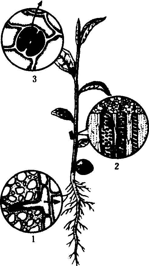图2 茶树体内水分运输、散失的途径 维持茶树水分平衡 强烈的蒸腾作用常引起茶树水分亏缺、茶树发生萎蔫, 若降低蒸腾使萎蔫的茶树消除水分亏缺, 称为暂时萎蔫; 若土壤中没有可被茶树吸收的水分,虽降低蒸腾, 仍不能消除水分亏缺,称为永久萎蔫。茶树发生永久萎蔫时, 土壤中尚存留的水分含量称为永久萎蔫系数(见茶树根系吸收)。茶树永久萎蔫就会死亡。正常的蒸腾作用是降低茶树体温,促进养分在体内运输、加速CO2和O2通过气孔的交换过程。蒸腾作用水分的散失是光合作用不可避免的损失。所以调节茶树的蒸腾作用, 维持体内水分平衡是重要的。在生产中有两种途径: 一是供给土壤充足的水分; 二是减低茶树的水分消耗。如茶园铺草、合理灌溉、茶树带土移栽、修剪枝叶、茶树遮荫等。 |