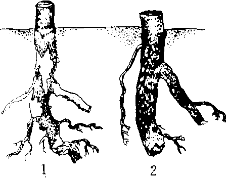 1.刚挖出的病根 2. 用水洗去泥土的病根