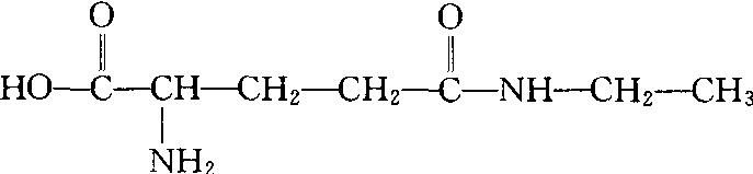 茶叶中的酰胺类化合物。系统命名为N-乙基-r-L-谷氨酰胺(N-ethyl-r-L-glatamine)。结构式如下。