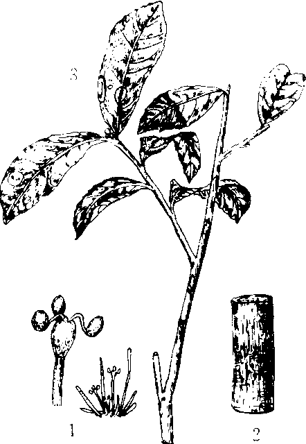 茶红锈藻病 1.孢囊梗及孢子囊 2.枝干部病状(树皮裂开) 3. 叶部为害状 |