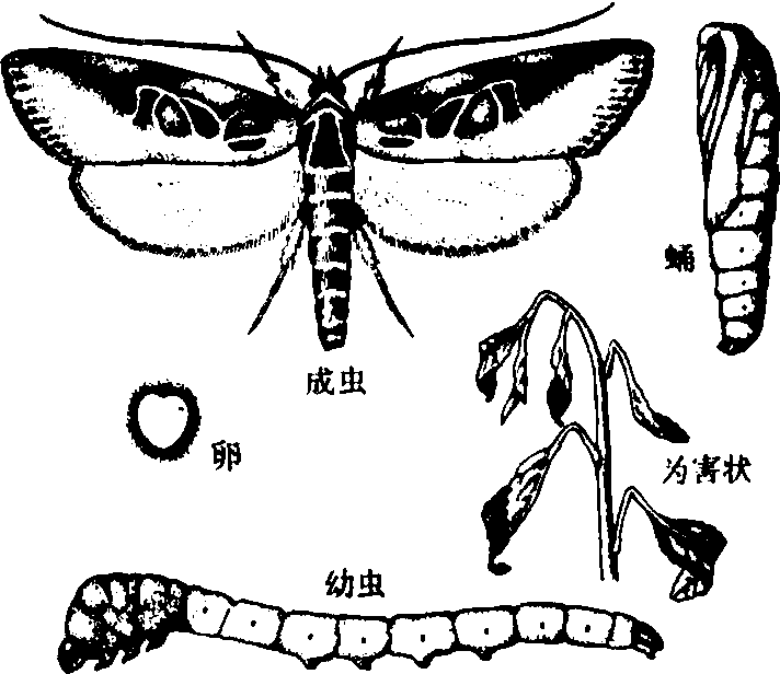 生活习性 在湖南、江西、安徽、浙江、福建、广东等省均一年发生1代,以老熟幼虫在被害枝干内越冬。次年4月上、中旬开始化蛹, 4月下旬成虫开始出现。成虫白天不活动, 常以前中足攀附枝叶, 悬挂于茶丛上。有趋光性。卵单产于幼嫩枝梢上部叶腋间,每枝1粒, 6月上, 中旬幼虫开始孵化。幼虫孵化后即蛀入梢内, 从上向下蛀食, 直达枝杆基部,导致芽梢凋萎以至整枝枯渴, 幼虫在茎内蛀害, 茎外留有3~5个排泄孔, 间隔排列成一列, 从中排出棕黄色粪粒, 聚积地上。幼虫老熟后在枝杆上部咬一圆形羽化孔,并有白丝封闭, 孔口下方的蛀道内, 布满絮状物,化蛹其中。 防治 抓住6~8月剪除被害虫枝, 结合防治其它害虫施药。 |