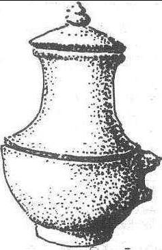 辽代陶器。1974内蒙古翁牛特旗广德公辽墓出土。通高18、口径8.1、足径5.7厘米。陶胎呈淡红色,盖为子口,上有塔式钮盖,肩下有一环状执柄,内外皆施釉。今藏翁牛特旗文管所。