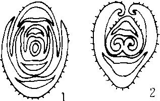 茶芽 1 .冬芽横切 2. 夏芽横切 |
