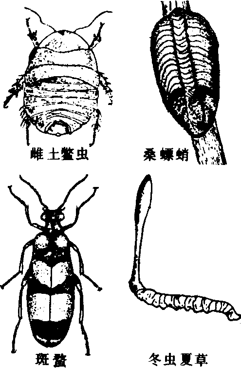 | 释义 | 药用昆虫用虫体的全部或一部分,或用其产品经加工制成药物的昆虫。种类很多,所含成分复杂。可用全虫入药的,如干燥土鳖雌虫(雄虫不作药用),性寒、味咸、微毒,内服有破淤通经功效,主治跌打损伤、闪腰、岔气和腰痛的功能。有大毒的斑蝥干燥成虫,经去头、足和翅后,也可研末入药外用,有主治急性扁桃体炎、咽喉炎的功效,内含斑蝥素,近年认为对癌细胞有杀伤作用。用昆虫产品入药的,如桑螵蛸(刀螂子)是螳螂的卵鞘,有补肾壮阳、固精缩尿的功效,特别是对老年人或体虚人小便频数及神经衰弱等有一定疗效;冬虫夏草是由虫草蝙蝠蛾的幼虫和虫头长出的一种子囊菌,即冬虫夏草菌的菌座组成(参见“冬虫夏草”条),性温、味甘,能补肺益肾,主治虚劳咳嗽、气喘、遗精及神经衰弱等。目前国内各地开展人工饲养药用昆虫,效益明显。