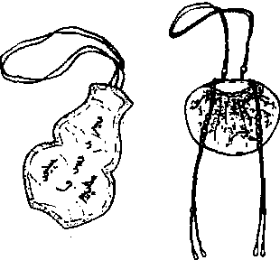 | 释义 | 荷包hébāo❶随身佩带用以盛放杂物的小囊,亦可用作香囊或饰物,一般置于怀内或悬于腰间。多以布帛制成,也有用金玉制成者,作用与今口袋相类。其状有圆形、方形、鸡心形、葫芦形、茄子形及小脚鞋形等。古称“鞶囊”“荷囊”,宋代以后则称“荷包”。宋代广为服用,且形制多样。有香草荷包、腰圆荷包、鸡心荷包、葫芦荷包、褡裢荷包、抱肚荷包等,包口多以细带收束。质料以刺绣为常见。清代尤为流行,与扇袋、眼镜袋、帕袋共为腰间佩饰,制作更为精巧。元无名氏《摩利支飞刀对箭》第二折:“两个不曾交过马,把我左臂厢砍了一大片,著我慌忙下的马,荷包里取出针和线,我使双线缝个住,上的马去又征战。”马致远《邯郸道省悟黄粱梦》第一折:“我十年苦志,一举成名,是荷包里东西。”明叶子奇《草木子·杂制》:“元路、州、县各立长官曰达鲁花赤,掌印信以总一府一县之治……达鲁花犹华言荷包上压口捺子也,亦由古言总辖之比。”《金瓶梅词话》第三十四回:“(潘金莲)胸前