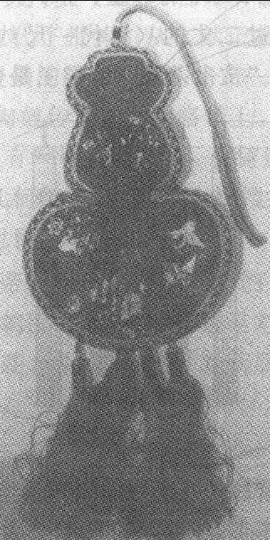 南宋黄昇墓荷包纹饰图 荷包一种腰饰。它的前身是荷囊。荷囊是用来盛放零星细物的小袋。因古人衣服没有口袋,一些必须随身携带的物品只能放在这种袋里。制作荷囊的材料,一般多用皮革,故又有 “鞶囊”之称。至于“荷包”之名,则出现于宋代以后。元杂剧及明清笔记小说中时常提及。清代荷包,传世甚多,通常以丝织物制成,上施彩绣。其中有一种圆形荷包较有特色,整个造型上小下大,中有收腰,形似葫芦,人称“葫芦荷包”。据说这种荷包最初是男子用来盛放烟叶的,后来因感其造型美观,乃争相仿效,不论男女,都喜佩之。李静山《增补都门杂咏》诗:“为盛烟叶淡巴菰,做得荷包各式殊。未识何人传妙制,家家依样画葫芦。”写的就是上述风气。