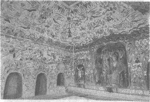 | 释义 | 莫高窟第285窟西魏。宽6.4米,进深6.3米,高4.3米。位于甘肃省敦煌县。为覆斗形禅窟,窟内正中有一方坛,西壁凿龛,南北凿禅室。大龛内的主尊坐佛高1.98米。洞窟的四壁、窟顶、龛内、龛楣满绘壁画。所画诸天、菩萨、外道、飞天、化生童子各有特色,技艺十分精湛。北壁保存有西魏大统四年至五年(公元538—539年)的墨书题记,是莫高窟早期唯一有确切纪年的洞窟,对莫高窟的分期断代研究和石窟艺术研究具有重要意义。