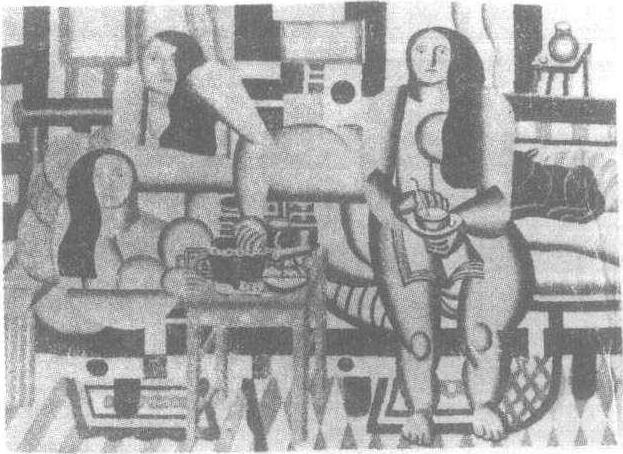 三个女人 莱热 莱热1881—1955法国画家,是立体派的代表人物,与把物体分解为直线形状的画法不同,莱热则热衷于圆柱体。他也是立体画派中尝试抽象画的第一人。并创作了 《形体的对比系列画》。这些画作色彩鲜明,特点是以平面和圆块图形作对照。第一次世界大战开始后,莱热接纳了未来画派对机械化与现代工业社会的热衷,战争经历也扩宽了他的社会视野,其作品常出现无产阶级的思想题材,如《机械工》。除人物画外,他还画静物和半抽象的色调鲜明的城市景象。30年代他的画风较为松散和曲线化,吸收了超现实主义的成份。二次大战期间莱热多创作杂技演员和自行车运动员的人物画。1945年加入共产党后则突出工人阶级伟大的题材。至50年代他的画有色调与轮廓相分离的特点,如《持花的两个妇女》。 |