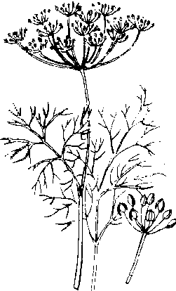 | 释义 | 莳萝西方东传之植物名。又名小茴香。《本草纲目》卷26引李珣曰: “按《广州记》云生波斯国。马芹子色黑而重,莳萝子色褐而轻,以此为别。善滋食味,多食无损。即不可与阿魏同食,夺其味也。”莳萝,波斯原音曰zira,梵语曰jira。原产伊兰高原,以后移植印度、埃及。莳萝有四种。起儿漫产者色黑,波斯产者色黄,性较猛烈。又有叙利亚种及那巴提种。 莳萝dill伞形花科(Umbelliferae)莳萝属形成芳香嫩叶的栽培种,一二年生草本植物。学名Ane-thum graveolens L.,别名土茴香。染色体数2n=2x=10。其芳香绿叶中含莳萝精油0.15%,果实中含3~4%。精油主要成分是藏茴香酮Carvone,C10H14O、柠檬萜(Limonene)、水芹菜萜(Phellandrene)等。维生素C含量也很丰富。嫩叶可炒食或作调味品。果实有健脾开胃消食作用。莳萝原产地中海沿岸地区,欧、美洲国家栽培较普遍,苏联高加索、小亚细亚亦有栽培,中国华南地区有少量栽培。叶轮生,三回羽状全裂,裂片线状。伞形花序,花淡黄,无花被。果实棕黄色,无刺毛,椭圆扁平状,长3~4毫米,宽2~3毫米,两侧棱线延伸成翼状,果实富含精油。菜用莳萝在出苗后30~40天采收全株,食其嫩叶;如作调味香料则在抽薹开花后采收。莳萝要求肥沃土壤和良好的水分、光照条件。采用撒播或条播法,每亩播种量: 菜用莳萝1.5~2.0公斤,调味用莳萝0.8公斤。播种后10~15天出苗,一般不间苗,苗高5~10厘米时浇水、追肥、中耕除草,保持土壤湿润。株高20~30厘米时可一次采收或间拔采收。莳萝抗病虫害能力较强。