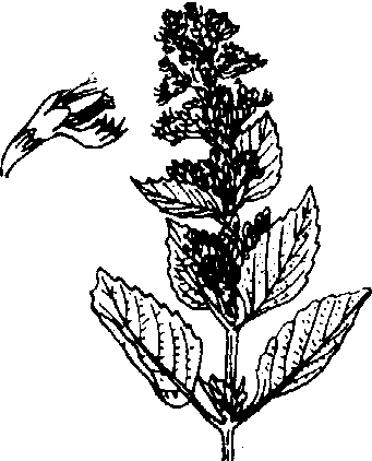 莸oneflowered bluebeardCaryopteris nepetaefolia(Benth.)Maxin.,又名荆芥叶莸。马鞭草科,莸属。多年生平卧草本。野生于林边、山坡及路旁等处。分布于江苏、安徽、浙江等省。植株基部木质化,茎4棱形,被柔毛。单叶,对生,叶片阔卵形至圆形,叶缘有钝锯齿,叶基圆形,两面有柔毛和油点。花淡蓝色或白色带紫色斑点,单生于叶腋;花萼5裂;花冠唇形;雄蕊4枚,着生于花冠内壁的上部;子房密生绒毛,柱头2裂。蒴果球形。全草入药能治中暑、感冒及尿路感染等症,外用可治外伤出血。 |