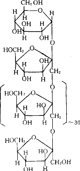 | 释义 | 菊糖又称“菊粉”。一种多缩果糖,由果糖-1,2-糖苷键连结而成。存在于菊科植物的根及块茎中。微溶于冷水,易溶于热水。分子中除含果糖外,还有葡萄糖。具有还原性。 菊糖inulin又称菊粉。果聚糖的主要类型之一。一般为30~35个D-呋喃果糖残基以β2→1糖苷键连结而成的线形分子,末端有一个蔗糖单位。是双子叶植物中主要非淀粉贮存性多糖。存在于菊科、桔梗科、萝藦科、龙胆科、半边莲科、报春花科、堇菜科和紫草科等植物中,以菊芋的根茎和大丽花的块根为最丰富。是制备高纯度D-果糖的原料。结构式见右。