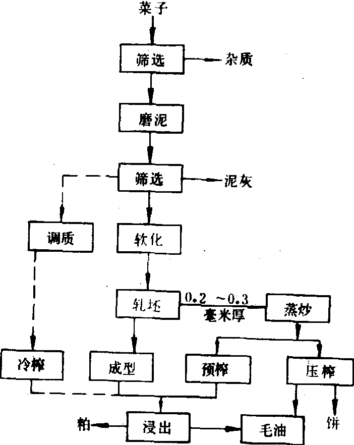 | 释义 | 菜子油制取加工rapeseed oil extraction从油菜子中制取油脂和饼粕的过程。油菜属十字花科芸薹属草本植物,有甘蓝型、白菜型与芥菜型之分,其子粒呈黄色、棕红色或褐色等的圆球形,平均直径1~3毫米。油菜子含油率30%~48%,含壳15%~25%,蛋白质19%~30%,纤维6%~15%,灰分4%~6%,糖类10%~24%。普通油菜子含芥子甙(硫代葡萄糖甙)4%~6%,加工时易水解成异硫氰酸酯(ITC)和恶唑烷硫酮(OZT)等有毒物质。同时,菜子油中芥酸含量高达18%~60%。芥酸是由22个碳原子组成的长链不饱和脂肪酸,人体不易吸收,营养价值低。目前,单低型(低芥酸)或双低型(低芥酸、低芥子甙)油菜子新品种,已培育成功并取得进展。例如,加拿大的卡诺拉(Canola)油菜子芥酸含量低于2%~5%,芥子甙含量低于0.5%~2%。中国一些省区引种的单低型奥罗(Oro)和双低型杰弗尔(Zepher)等油菜品种也取得成功。油菜子加工不仅可制取各种规格食用油脂、饲料用或食用级饼粕,而且,菜子油中的芥酸是良好的化工原料,可用以生产防水剂、防腐剂、润滑剂与增塑剂等。