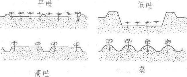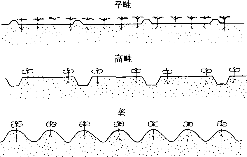 畦的形式 中国常用的菜畦主要的有平畦、高畦和垄三种形式。