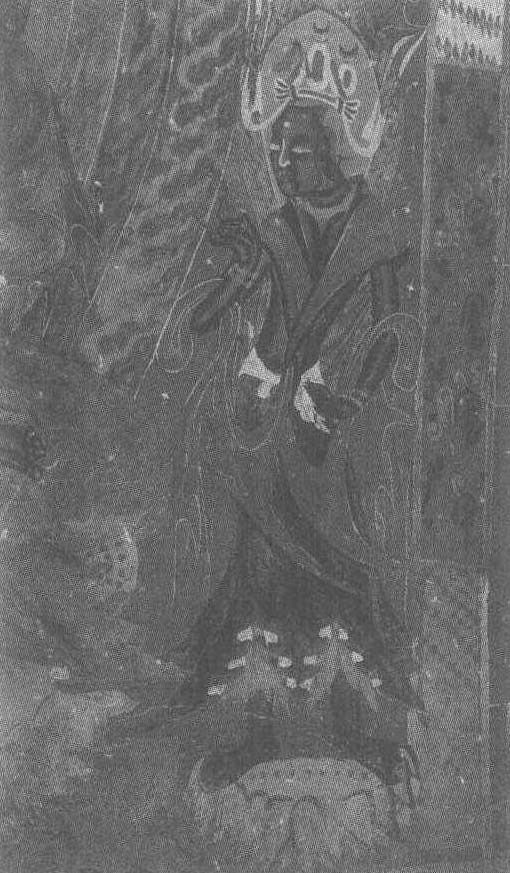 | 释义 | 菩萨壁画北魏。纵172厘米,横80厘米。甘肃省敦煌县莫高窟第435窟南壁说法图西侧壁画。此为莫高窟北魏壁画中较为优美的菩萨形象。头戴花冠,脸型瘦削而有棱角,五官细致纤秀。腰围长裙,裙边呈锯齿状,上身仅披长巾,长巾绕臂穿过,形成流畅的线条,赋以蓝色,与深色的身体形成强烈的反差,衬托出菩萨站姿的潇洒,开西魏壁画绘画风格的先声。