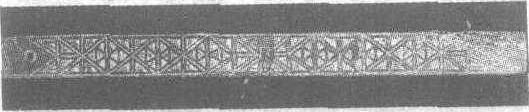 菱形纹铜尺东汉。长23.29厘米,宽2厘米,厚0.3厘米。1956年湖南省长沙雷家嘴工地东汉墓出土。湖南省博物馆藏。此尺用铜制成,略有剥蚀,尺等分十寸,铸菱形纹饰,其一端第一寸纹饰有剥落,另一端第一寸仅有半寸纹饰,中有一穿孔。