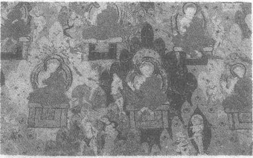 | 释义 | 菱格因缘故事图壁画南北朝至隋。新疆维吾尔自治区拜城县克孜尔石窟第8窟主室窟顶壁画。美术考石工作者曾对克孜尔石窟进行调查。有的专家对70余个窟形完整,壁画保存较为完好的石窟划分出四期。第8窟被划分在第三期,第三期石窟壁画的绘制时间约为南北朝至隋朝。主室脊顶向上隆起的中脊部位为一竖向天象图,绘出月天、风神、立佛、金翅鸟、和日天等各种形象,中脊所分的左右两部分,每部分由四列菱形格和两列半菱形格组成。菱形格内佛像占据主要位置,佛像的左侧或右侧绘佛传中的某一故事,但因过分简单,所以难以辨认。下端半菱格内绘本生故事,如睒子本生故事,须达拏本生故事,月光王本生故事等,均以这些故事中最有特点的一个情节加以表现。所绘人物线条粗犷,色彩浓艳。