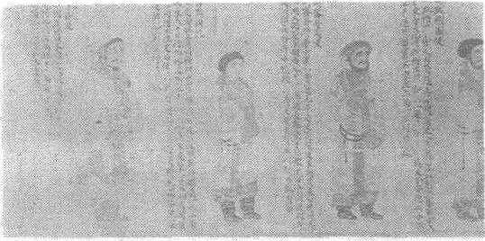 | 释义 | 萧绎职贡图卷(宋摹本)又名《番客入朝图》、《王会图》。梁。萧绎绘。绢本设色。纵25厘米,横198厘米。北京中国历史博物馆藏。梁元帝萧绎(公元508—554年)字世诚,小字七符,梁武帝萧衍第七子,兰陵(今江苏常州)人,初封湘东郡王,后即帝位。西魏军攻陷江陵,被掳遇害,在位三年。萧绎自幼聪慧好学,能书善画,有文采,著述甚多,后人辑有《梁元帝集》传世。萧绎擅画人物肖像、佛教画和花鸟画,他曾为孔子庙作《宣尼像》,并自作赞书于图上,时称其画、书、赞“三绝”。姚最评其肖像画“特尽神妙,心敏手运,不加点染……造次惊绝”。《职贡图》这类题材可以说是萧绎首创,他在《职贡图序》中说:“臣以不佞,推毂上游,夷歌成章,胡人遥集,款开蹶角,沿溯荆门,瞻其容貌,讯其风俗。如有来朝京辇,不涉汉南,别加访采,以广闻见。名为职贡图云尔。”表达了他的创作动机。唐代阎立本及以后的画家在此基础上进一步赋予《职贡图》更多的内容,从此这类题材的画卷成为表现国家富强、各族人民友好相处以及各地域间经济文化交流的重要手段。对我们今天研究历史上的民族关系有重要的参考价值。此图描绘前来中国的各国使节形象,为一残卷,从右至左分别为滑国、波斯、百济、龟兹、倭国、狼牙修、邓至、周古柯、呵跋檀、胡密丹、白题、末国12位国使。皆半侧身左向站立,身后有楷书题记,分别注出国名,山川道里,风土人情以及与梁朝的交往情况,贡物品名等等。内容与《梁书·诸夷传》大体相符,而部分段落更为详实,可补正史之不足。各国使者形象准确,个性鲜明,或虬髯碧眼,或卷发高鼻,或粗放豪爽,或文质彬彬。虽然他们姿态相仿,并都显得恭敬有礼,面有喜色,但不同的身形,不同的相貌,不同的衣装以及举止动作上的微小差别都表现了他们各自不同的气质特征。波斯使者老成持重,百济使者清秀儒雅,倭国使者怡然自乐,狼牙修使者自然大方。根据著录,全卷应包括25国使节,高句丽、于阗、新罗、宕昌、中天竺、师子国、北天竺、朅盘陀、武兴番、高昌国、天门蛮、建平蜒和临江蛮这13国国使均已佚失,而现存部分亦有残缺、漫漶,有的题记不全,有的图像缺失。此图笔力遒劲、线条流畅、色调古朴明快,曾传为唐代阎立德或阎立本所作。但从题记的内容、行文语气、朝代、年号的名称以及避讳字看,它应该是以萧梁时期的原作为底本的宋人摹本。此图曾由清人梁清标收藏,后入清内府,民国年间被溥仪携至东北后,流散残损。《大观录》、《石渠宝笈初编》著录。