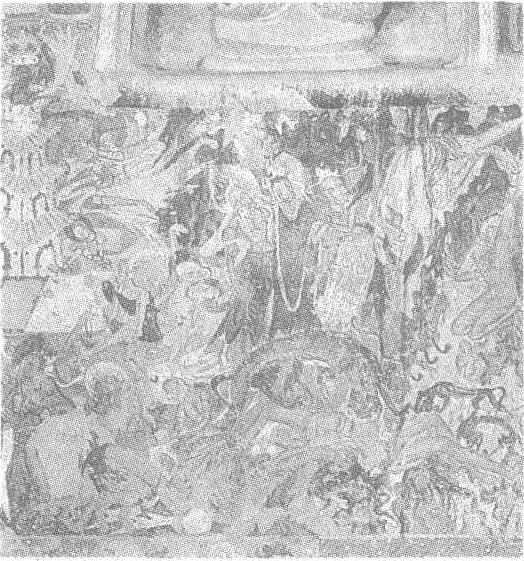 | 释义 | 萨埵本生图壁画北魏。纵165厘米,横172厘米。甘肃省敦煌县莫高窟第254窟南壁中部壁画,又名《舍身饲虎图》,是中国早期佛教艺术最流行的题材之一。据《金光明经》和《贤愚经》载,王子摩诃萨埵与兄共三人出游山村,至山崖,见崖下一母虎和七仔虎,因饥饿而奄奄待毙,摩诃萨埵乃以身饲虎,因虎饥饿已甚,仍不能食,王子则用干竹刺颈出血,从山崖跳下为饿虎所食。其兄以萨埵饲虎事告知父母,国王及王后悲痛欲绝,前往收其尸骨并建塔供养。此图将故事的主要情节形象地概括出来,将三人山崖观虎、刺颈、投崖、饲虎、回宫报信、父母哭尸、拾遗骨、起塔供养巧妙地集中于一个画面。人物穿插交织,主题突出,画面紧凑。太子跳崖及饲虎两个情节安排在突出位置,使画面具浓厚的悲壮气氛。值得一提的是国王及王后赶到时,呈现在面前的并非尸骨残骸的惨状,而是形体完好,神情安详,似入梦乡的王子。从而冲淡了残酷的气氛,并强调出王子心灵上的满足。画师显示了独特新颖的构思,浪漫主义的情调发挥得淋漓尽致。此图人体以粉色渲染,具有光暗向背变化,线条流畅,富有弹性。所用色彩以深色为主,间以棕、青、绿、白等色,对比强烈,是莫高窟早期本生故事图中的一幅杰出之作。有人称之为古代中国画师画外国故事的典范作品。