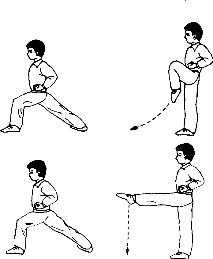 步法之一。是完成腿法动作或腿提起后向前落地的动作。教学重点 强调落步的距离和位置要准确,落地即成正确的步型。