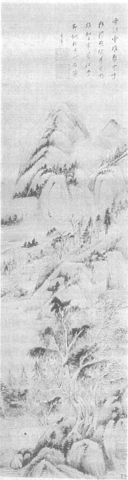| 释义 | 董其昌剪江草堂图轴明。董其昌绘。纸本水墨。纵94.3厘米,横25.5厘米。广东省广州美术馆藏。董其昌见《董其昌昼锦堂图卷》条目。图中起伏的丘坡上,三株古树枝繁叶茂,生机勃勃。树丛间的两排茅舍错落于坡前旷地,面水而立。剪江对岸,远岫雄浑苍茫,一条瀑布玉练般倾泻而下;近处坡势平缓,挺拔的树木纵横有序,郁郁苍苍,岸边草房星罗棋布。图的右上角有董其昌自题:“雪浪云堆势可呼,移将点缀草堂图。谁知王宰剪江手,却似初平比石符。玄宰。”钤白文〈宗伯学士〉、〈董氏玄宰〉两方印。右下边有〈梅景书屋〉、〈吴湖帆〉、〈潘淑珍藏〉等收藏章,裱边有吴湖帆题跋。此幅墨色苍润,韵味充足,是董其昌晚年的得意之作。