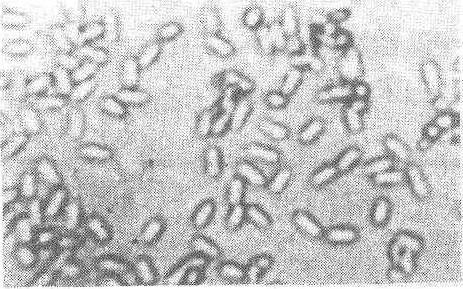 图1 蓖麻蚕微粒子孢子 蓖麻蚕微粒子孢子较宽长,具强烈折光性,带蓝色光泽。未成熟的孢子光泽很淡或缺少光泽(图1)。微粒子病传染途径有食下传染和胚种传染两种。传染源主要是蚕沙、 病蚕尸体,病蛹、病蛾及其鳞毛。此外,熟蚕排泄液,各变态期的蜕皮壳、卵壳、血液、肠液、茧、丝等都带有不同数量的孢子。本病能与柞蚕、樗蚕、天蚕、山蚕、斜纹夜盗蛾、黄褐蛱蝶的微粒子病互相传染; 但蓖麻夜蛾及灰带毒蛾不易感染。 蓖麻蚕患有微粒子病时,卵失去固有的卵色,易剥落,卵粒分散,病蛾产卵量较少,产卵后不久,卵面便凹陷,孵化不齐。幼虫病重时,发育极慢,体瘦小。病蚕较早出现发育不齐,就眠也极不齐,尤以大眠更为显著。多迟眠蚕、半蜕皮蚕或不蜕皮蚕。蚕熟时病蚕体侧卧或吐水,不吐丝,死笼率高。死后尸体不腐烂,不发臭,多出现死蛹、半羽化蛹或不羽化蛹。有些病蛹的第5、6腹节的腹面各有一对白点,羽化率低。病蛾呈秃毛、大肚、拳翅、半出茧及污尿蛾等症状。各器官的病变以马氏管、脂肪体、绢丝腺受害最为严重,神经系统、生殖器官次之。马氏管病变呈红白色,略肿大。脂肪体病变肿大,呈乳白色或黄白色,半透明或混浊。背脉管及神经系统两侧的脂肪体病变较多。绢丝腺病变呈乳白色,黄白色或灰白色,不透明,略肿大。中部丝腺病变最多,前部最少(图2)。