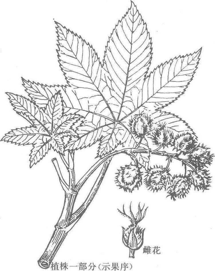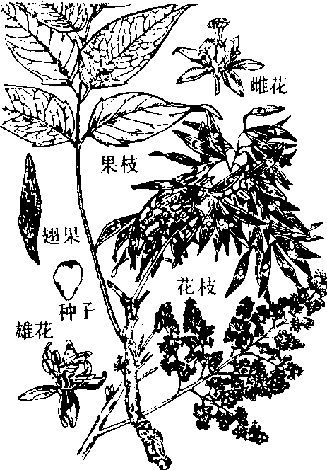 图1 蓖麻 臭椿 属苦木科,落叶乔木。奇数羽状复叶互生。小叶披针形或卵形,有臭味。圆锥花序,翅果。3月间开始发芽,5~6月开花,果期8~10月,11月间落叶。臭椿耐旱,耐瘠,多生于海拔1,600米以下的山坡谷地或路旁。臭椿又称樗树。臭椿叶是樗蚕喜食的饲料,也是蓖麻蚕的主要饲料之一。每年4月中旬或下旬就可采叶,中国北方多用臭椿叶来繁殖原种。养蚕的效果与叶片老嫩、成熟程度、养蚕季节以及树龄大小有关,适熟叶养蚕成绩较好,相当于蓖麻叶。当叶片老化或盛花期后,叶质降低,影响养蚕成绩(图2)。