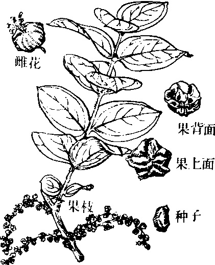一般亩产鲜薯500~1,000千克,产叶250~300千克。用木薯叶饲蚕的产茧量相当于用蓖麻叶的85%~90%。木薯生产以产薯为主,过早或过度采叶都会影响产薯量。但是,随着木薯的生长,当下层叶受到荫蔽或植株封行以后,叶片光照不足就会出现黄老和落叶现象。所以在适当时期,适度采摘下部叶片养蚕对产薯影响是很小的。其合理采叶技术应掌握下面几点: ❶播种至7月间是木薯的茎、叶生长的初期阶段,也是块根开始分化与条数形成的主要时期,此时叶片不多,光合作用旺盛,不宜采叶。 ❷7~9月是生长旺盛期,由于茎的增长和分枝增多,茎枝下部叶片受荫蔽,其光合作用强度已显著减弱。此时可适量采叶养蚕,一般每月采叶一次,每次采全株叶片数的1/6~1/5较为适宜。 ❸9月以后,生长减弱,块根日趋成熟,此时缩短每次采叶相隔时间,以25天左右采叶一次,每次采全株叶数的1/5~1/4。挖薯前应充分利用叶片养蚕。如果采用蓖麻叶饲养小蚕,木薯叶饲养大蚕,其养蚕效果更好(图3)。 马桑 属马桑科,多年生落叶丛生小灌木。茎菱形,多分枝,单叶互生,椭圆形,总状花序,紫红色或白色。种子细小,有毒,可榨油,根有根瘤。在中国,马桑主要分布于湖南、湖北、四川、贵州、广西、云南、甘肃、陕西、山西、河南、西藏等省区中的部分地区。马桑多生于阴凉多湿的土壤上,适应性强,在荒山、陡坡、岩石隙缝、多种树林中,以及田坎溪边均能生长。马桑极易繁殖,方法有分兜、扦插、直播和育苗移栽。由于其萌发力强,采摘和台刈后还可以很快萌发新茎叶,一年中可以采摘2~3次,农业上常割取其鲜嫩茎枝作绿肥。用马桑叶饲养蓖麻蚕,蚕发育正常齐一,产茧量相当于用蓖麻叶饲养的60%~70%(图4)。