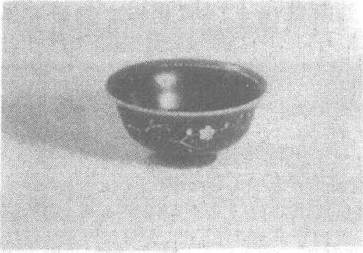 | 释义 | 蓝釉加金彩瓷酒杯元。高4厘米,口径8.1厘米。1964年5月河北省保定市窖藏出土。河北省博物馆藏。早在唐代,呈蓝色的钴即用于低温铅釉陶中,在出土的唐三彩中即可见到。高温蓝釉的烧制成功则是在元代的景德镇。从此,瓷器的颜色釉又增添了一个新品种。此件酒杯瓷胎较薄,造型精巧。全器施蓝釉,釉层较厚,色如蓝宝石,光可鉴人。杯内外均绘金彩,外壁为一枝梅花,金色的花朵与宝石般的釉色相映衬,显得极为华丽。这种金彩是在烧好的蓝釉器物上描绘后经再次烘烤而成。元代蓝釉描金器传世不多。