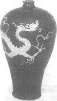 元代制品,现为江苏省扬州博物馆所藏。瓶高43.3厘米,造型饱满而挺拔、白龙蜿绕腾舞、神采飞扬,有凌波入云的气势,配以深蓝的地色,蓝白相间,简洁明快,气魄很大。