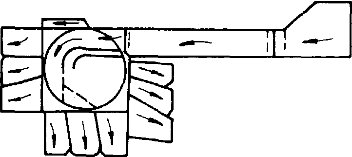 图 1 旋转圆盘式分选装置示意图 适用于近乎球状的被选物。被选物在旋转圆盘的旋转力和离心力作用下沿四周导板滚动,小尺寸的先分选出来,最大的则从最后的分选口排出。光电式形状分级机利用蔬菜通过光电系统时的遮光时间,测量被选蔬菜的外径或大小。按照遮光方式的不同,又可分为帘形射线式、脉冲计数式、复合式等。复合示光电选果机(图2)采用脉冲计数方式,测量蔬菜果实的纵截面直径,用帘形射线方式测量横截面直径。根据这两个参数与设定的标准值相比较,进行分级。该装置适于分选黄瓜、番茄、茄子等,其中对番茄的处理能力为每小时1 000个。