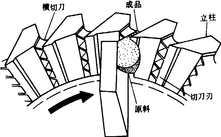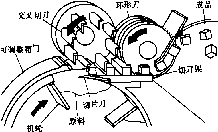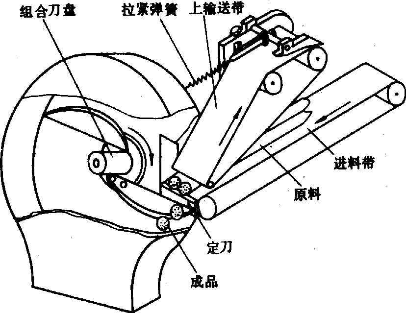 图2 离心切丝机示意图 各类机型已发展到100多种,且以中小型为主。与此同时,发展了适于家庭的微型机。机具与蔬菜接触部位多采用不锈钢材料、无毒塑料、玻璃器皿或表面电镀。广泛采用组合刀具,使一机多用。喂入机构也力求方便、安全,尽量减少残留量。如高效多切机、液压花样成型机已研制成功。